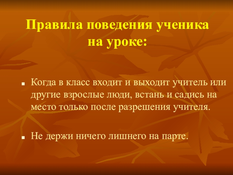 или другие взрослые люди, встань и садись на место только после разрешения учителя.