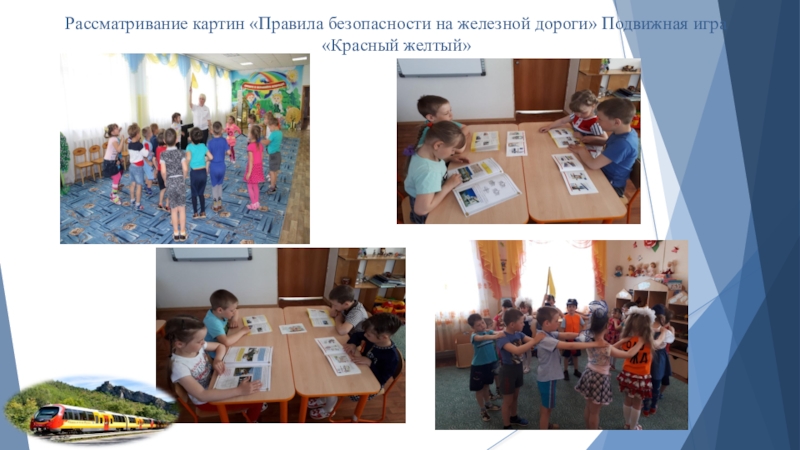 Слайд 7Рассматривание картин «Правила безопасности на железной дороги» Подвижная игра «Красный желтый»
