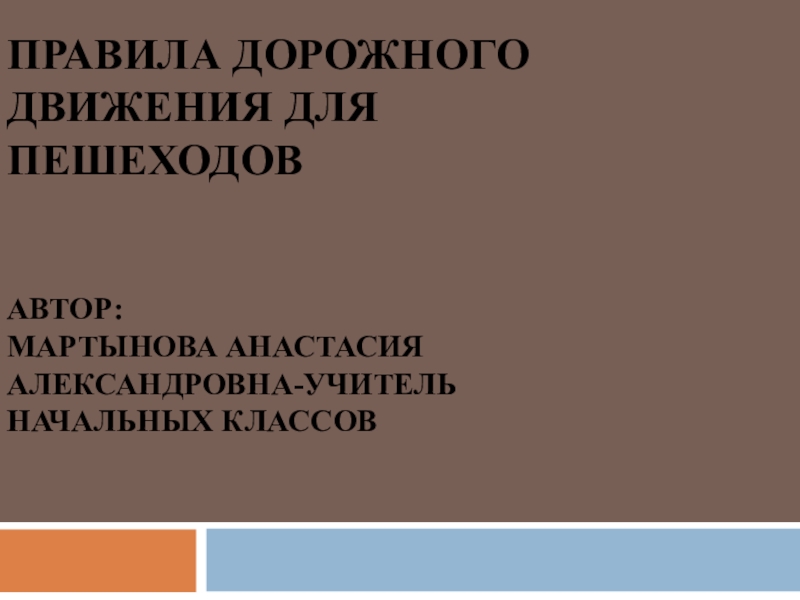 Слайд 1Правила дорожного движения для пешеходов Автор: мартынова анастасия александровна-учитель начальных классов