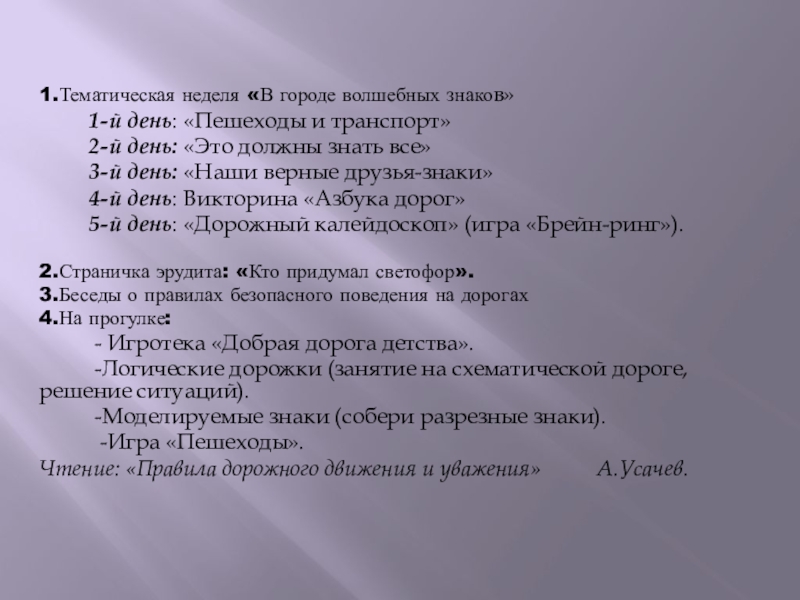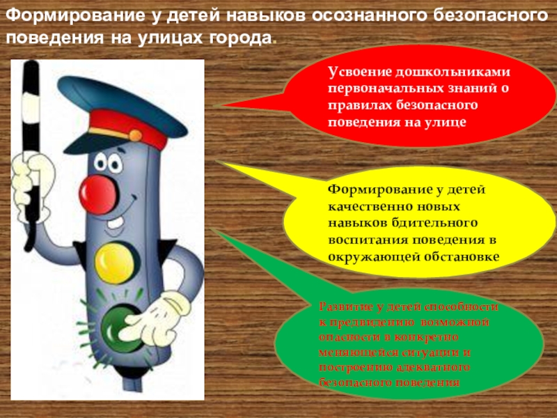 Формирование у детей навыков осознанного безопасного поведения на улицах города.