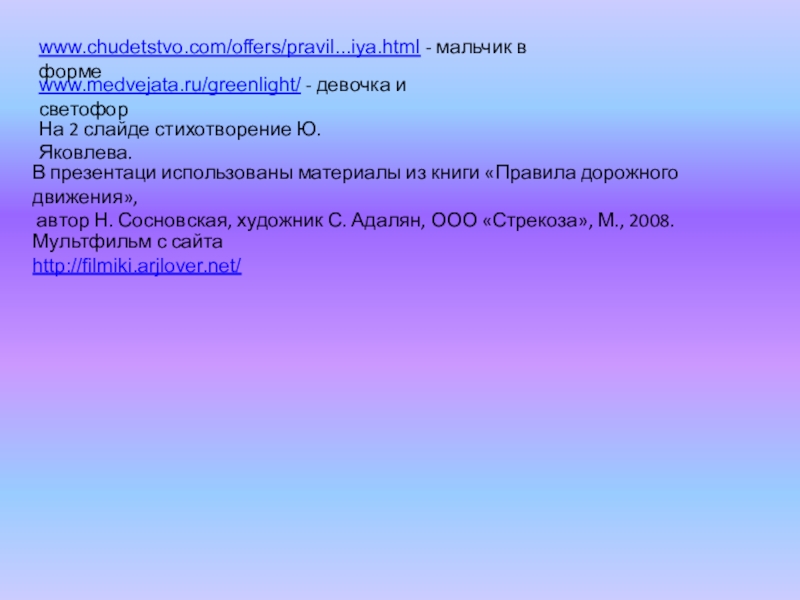 В презентаци использованы материалы из книги «Правила дорожного движения»,