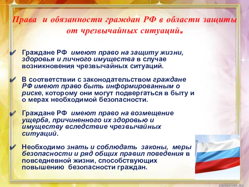 Права и обязанности граждан РФ в области защиты от чрезвычайных ситуаций.
