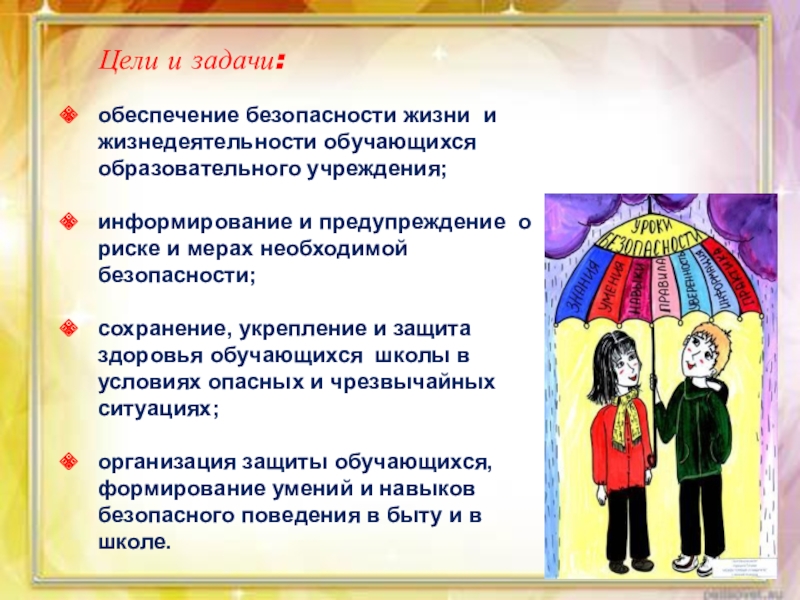 организация защиты обучающихся, формирование умений и навыков безопасного поведения в быту и в школе.
