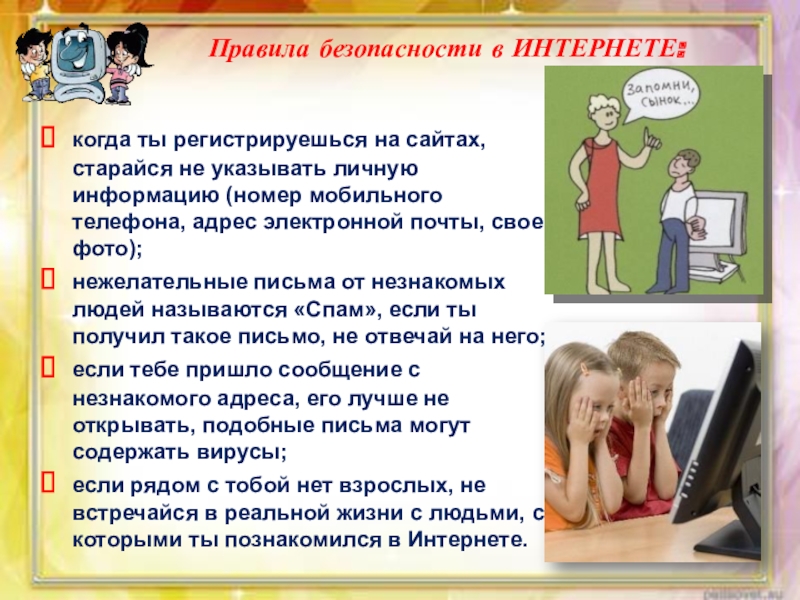 Правила безопасности в ИНТЕРНЕТЕ: