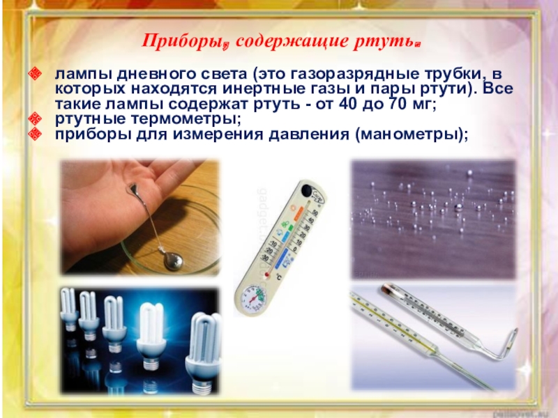 Приборы, содержащие ртуть.