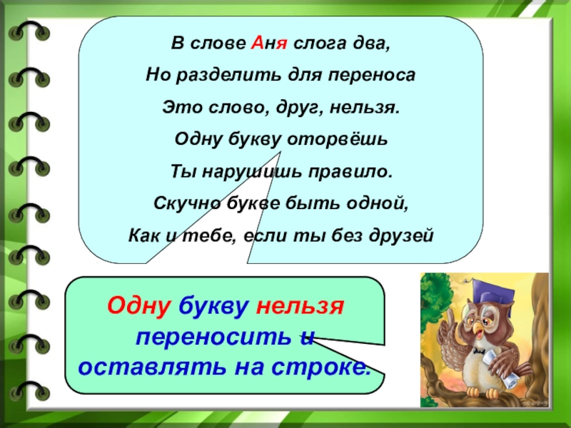 Слог разрывать нельзя. Чтобы перенести слово нужно уметь правильно разделить его на слоги.