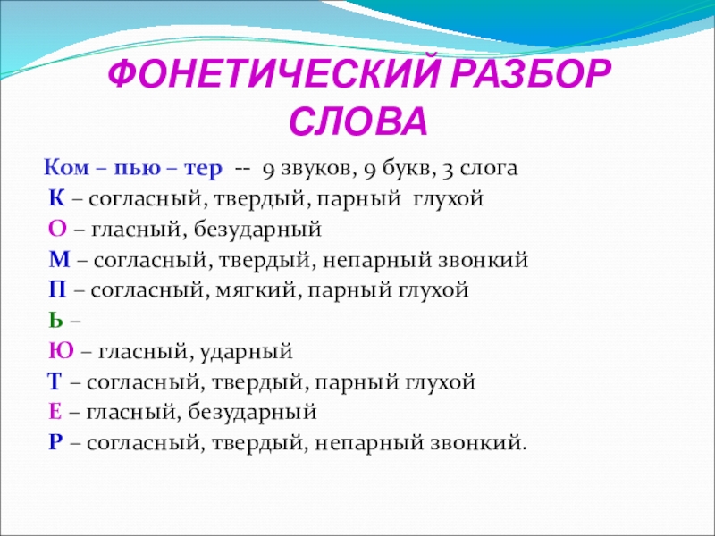 Слайд 5ФОНЕТИЧЕСКИЙ РАЗБОР СЛОВА