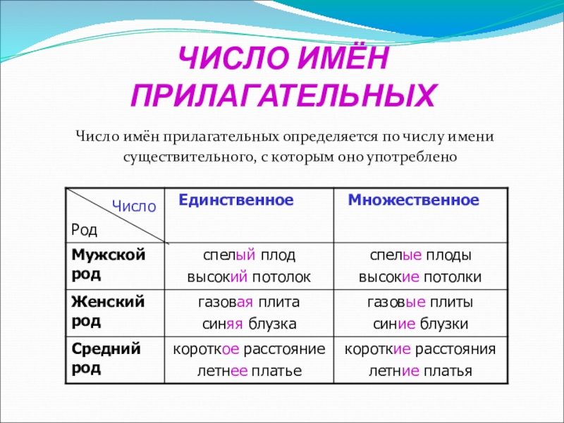 Слайд 19ЧИСЛО ИМЁН ПРИЛАГАТЕЛЬНЫХ