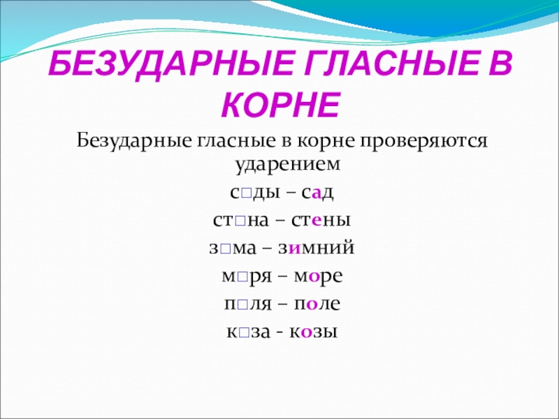 Слайд 7БЕЗУДАРНЫЕ ГЛАСНЫЕ В КОРНЕ