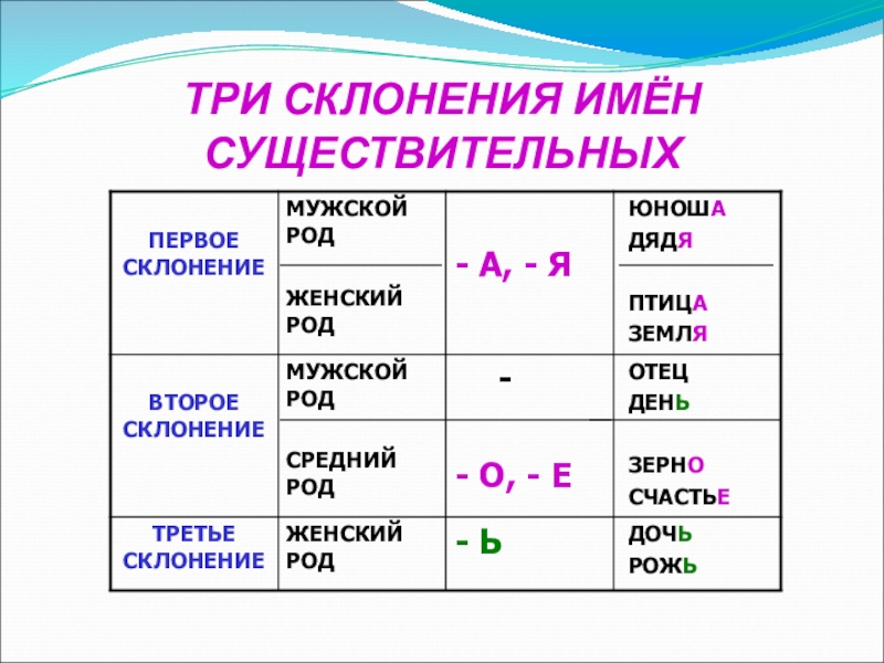 Слайд 17ТРИ СКЛОНЕНИЯ ИМЁН СУЩЕСТВИТЕЛЬНЫХ