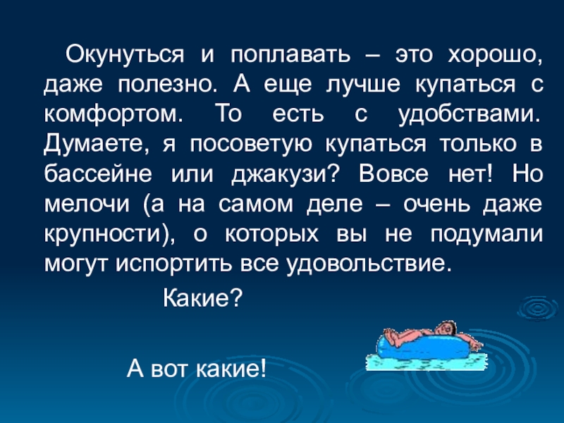 Входите в воду не сразу,