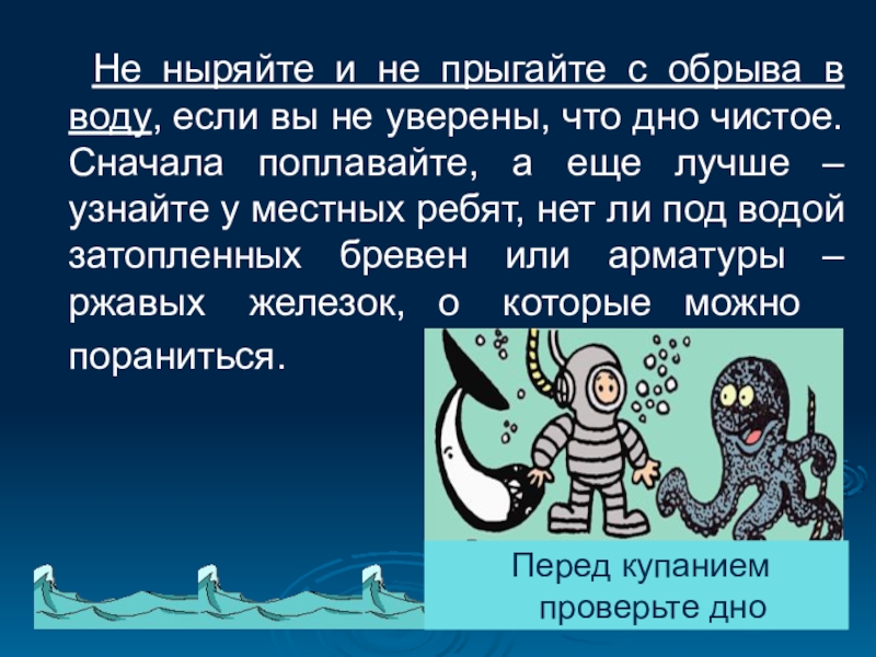 Перед купанием проверьте дно