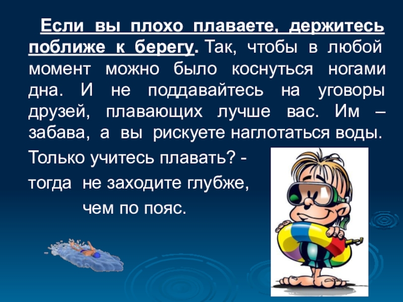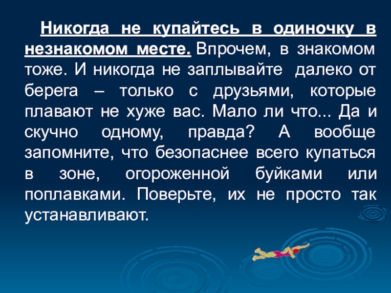 Будьте осторожны в воде.
