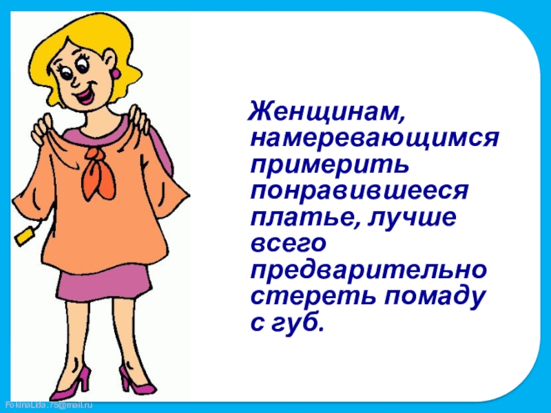 Женщинам, намеревающимся примерить понравившееся платье, лучше всего предварительно стереть помаду