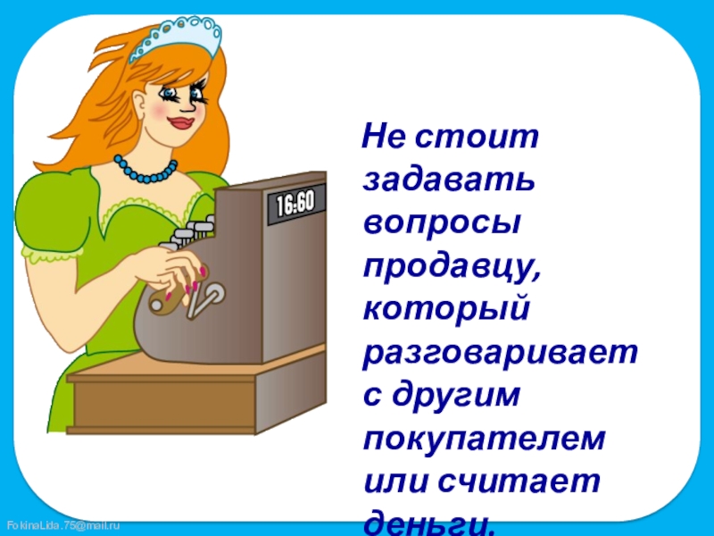 Не стоит задавать вопросы продавцу, который разговаривает с другим покупателем или считает деньги.