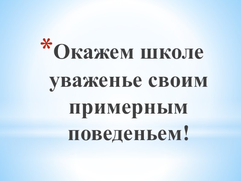Слайд 2Окажем школе уваженье своим примерным поведеньем!