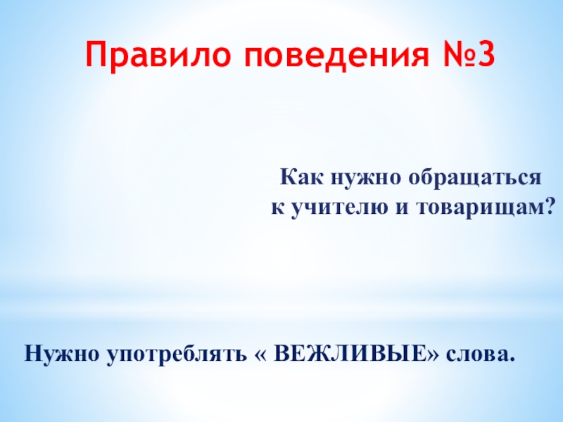 3. Обращаясь с просьбой к учителю или товарищами, нужно употреблять « ВЕЖЛИВЫЕ» слова.