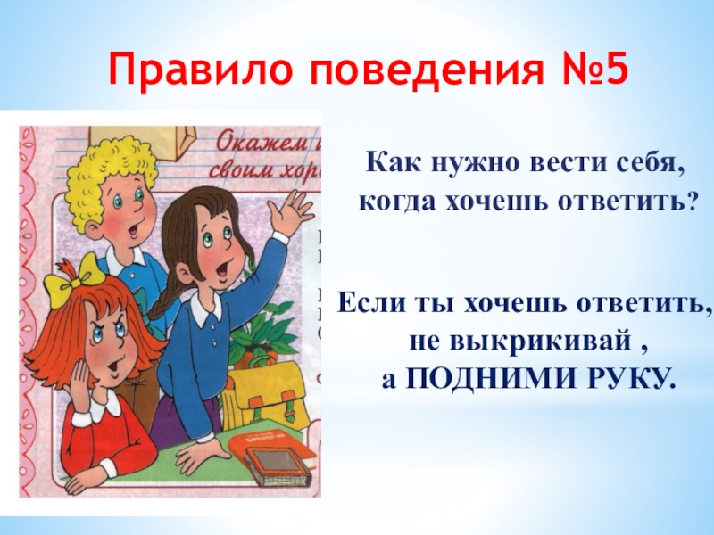 5. Если хочешь ответить, не выкрикивай, а подними руку.