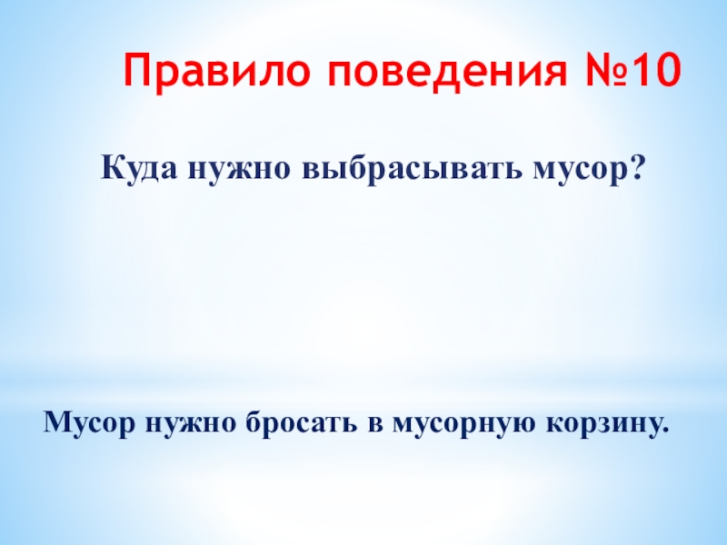 10. Мусор нужно бросать в специальную корзину.
