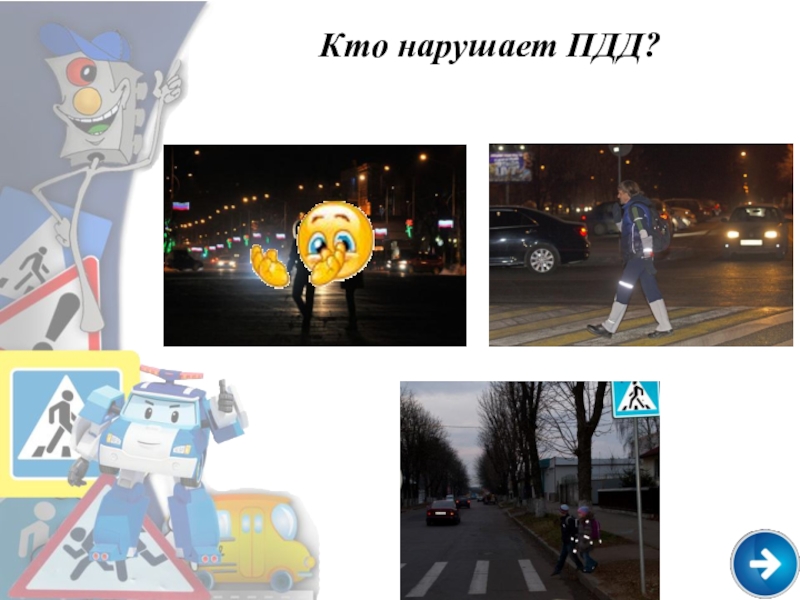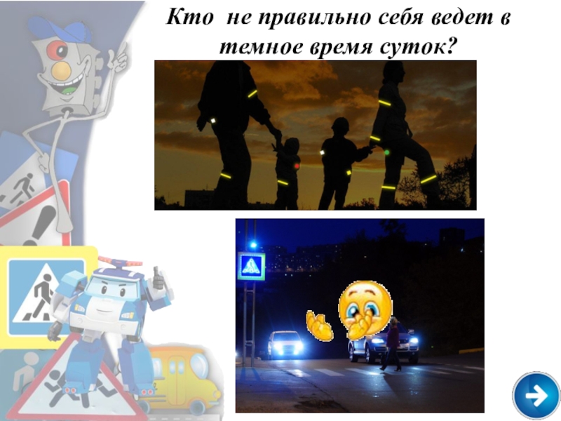Слайд 13Кто не правильно себя ведет в темное время суток?