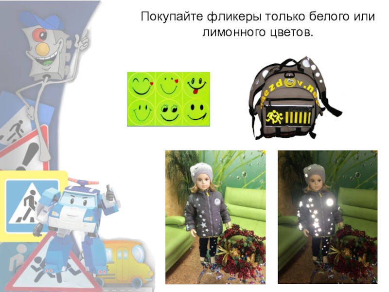 Слайд 7Покупайте фликеры только белого или лимонного цветов.
