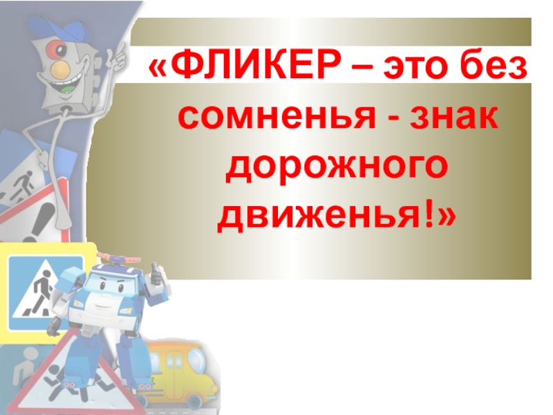 Слайд 3«ФЛИКЕР – это без сомненья - знак дорожного движенья!»