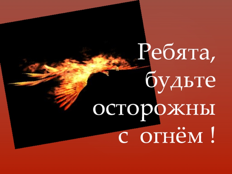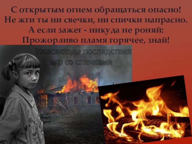 Слайд 15С открытым огнем обращаться опасно! Не жги ты ни свечки, ни спички