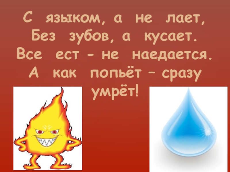 Слайд 2С языком, а не лает, Без зубов, а кусает. Все ест -