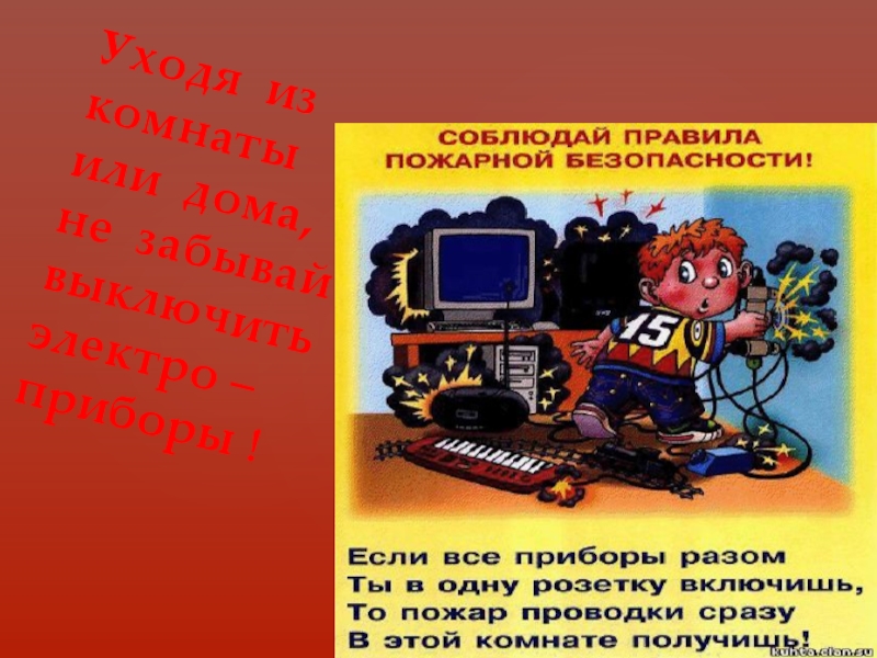 Уходя из  комнаты  или дома,  не забывай  выключить  электро – приборы !