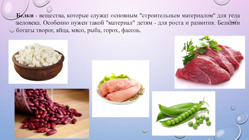 Слайд 6Белки - вещества, которые служат основным "строительным материалом" для тела человека. Особенно