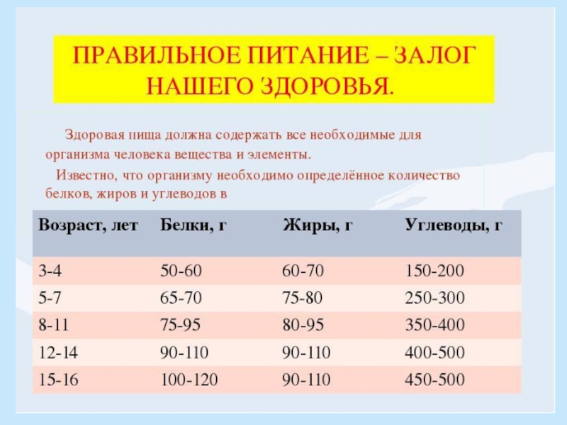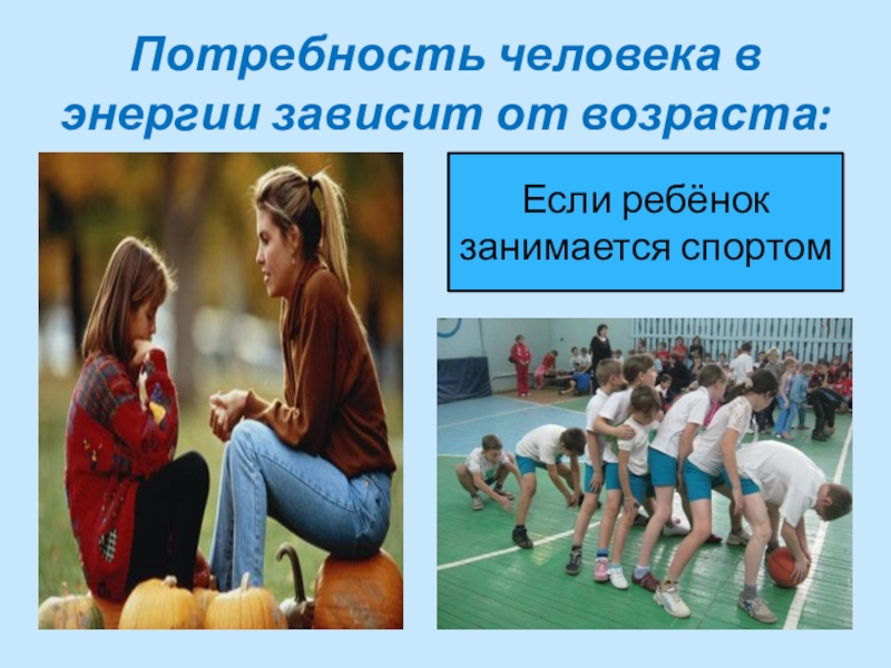 Потребность человека в энергии зависит от возраста:Если ребёнок занимается спортом