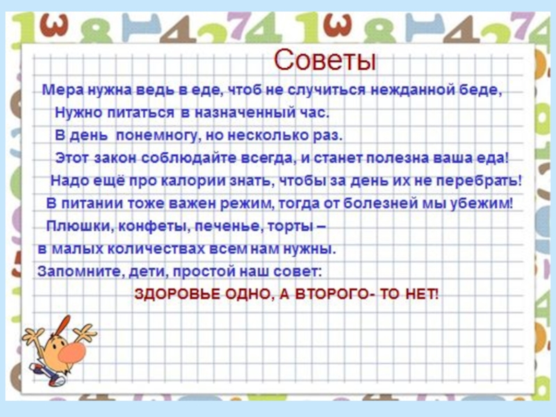 Презентация, доклад Правильное питание-залог здоровья (4 класс)