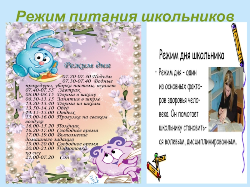 Режим дня и питание школьников
