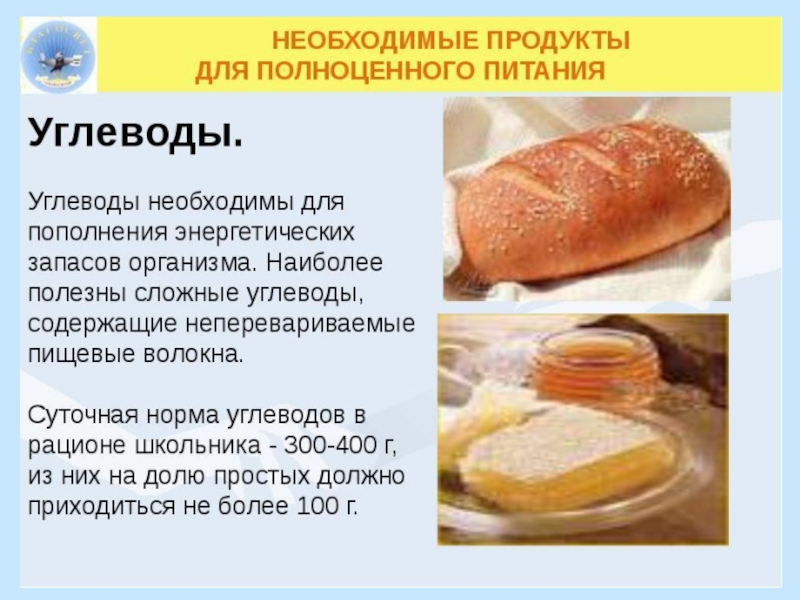 Суточная норма углеводов в рационе школьника 300-400 г. Необходимые продукты в