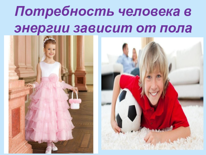 Слайд 28Потребность человека в энергии зависит от пола