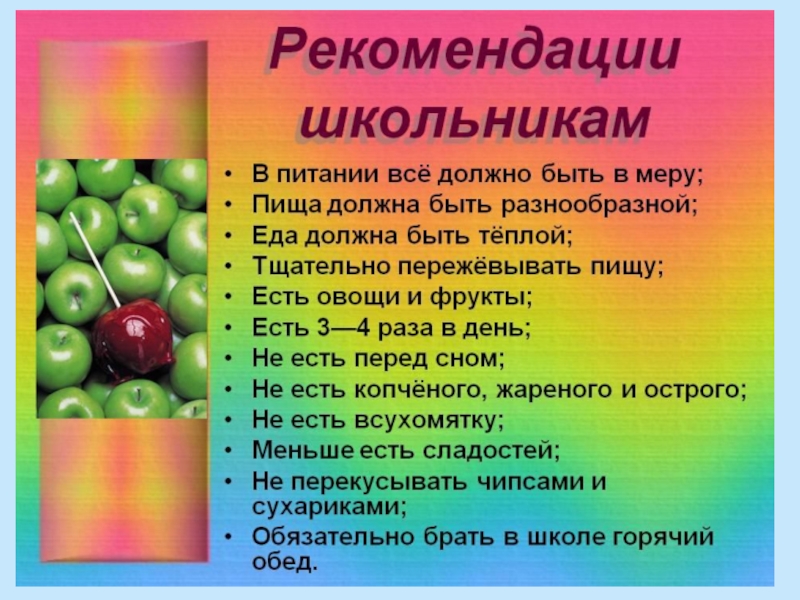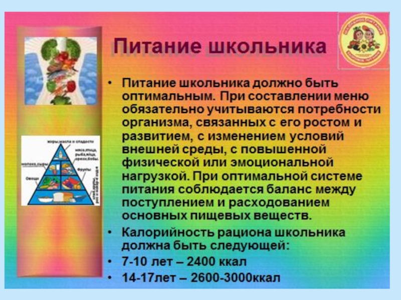 Правильное рациональное питание школьников