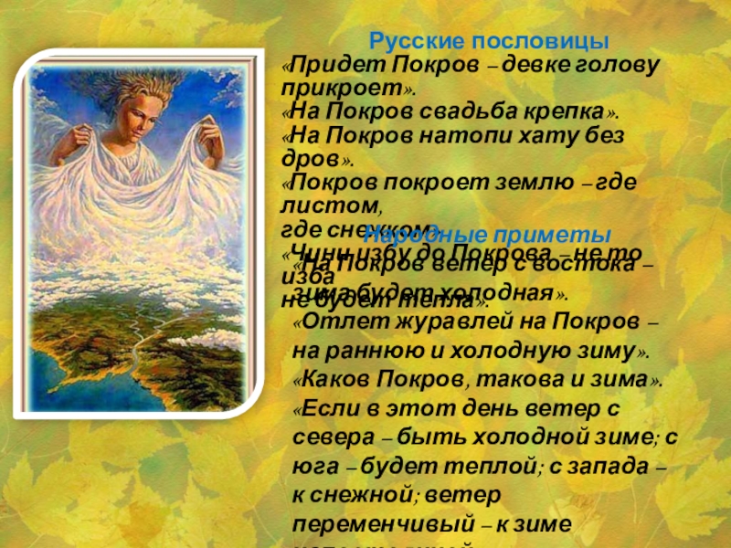«Если в этот день ветер с севера – быть холодной зиме; с юга – будет теплой; с запада – к снежной; ветер переменчивый – к зиме непостоянной».