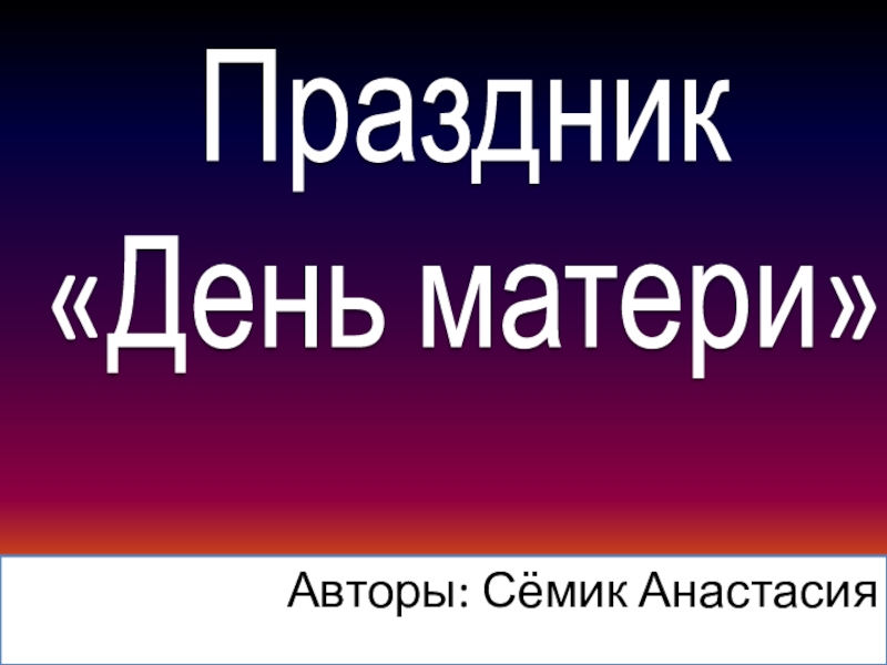 Праздник  «День матери»Авторы: Сёмик Анастасия