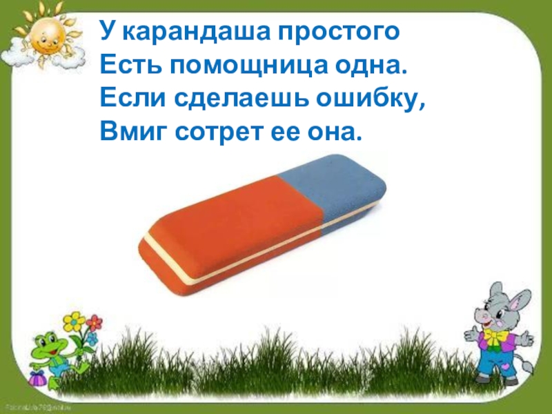 У карандаша простогоЕсть помощница одна.Если сделаешь ошибку,Вмиг сотрет ее она.