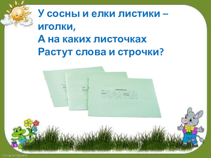 У сосны и елки листики – иголки,А на каких листочкахРастут слова и строчки?