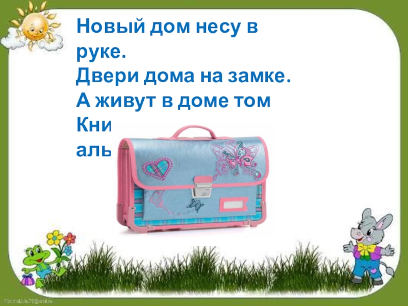 Новый дом несу в руке.Двери дома на замке.А живут в доме томКнижки, ручки и альбом.