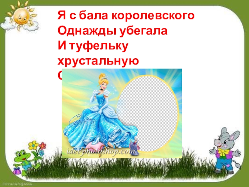 Слайд 7Я с бала королевского Однажды убегала И туфельку хрустальную Случайно потеряла.