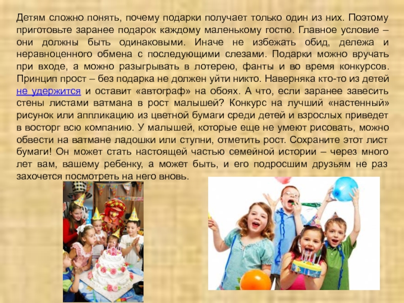 Слайд 7Детям сложно понять, почему подарки получает только один из них. Поэтому