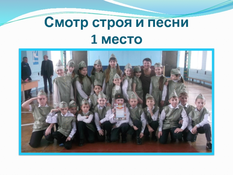 Слайд 8Смотр строя и песни 1 место