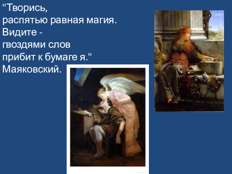 Слайд 6"Творись, распятью равная магия. Видите - гвоздями слов прибит к бумаге я." Маяковский.