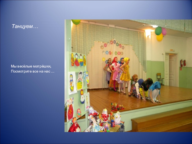 Танцуем…Мы весёлые матрёшки,Посмотрите все на нас …