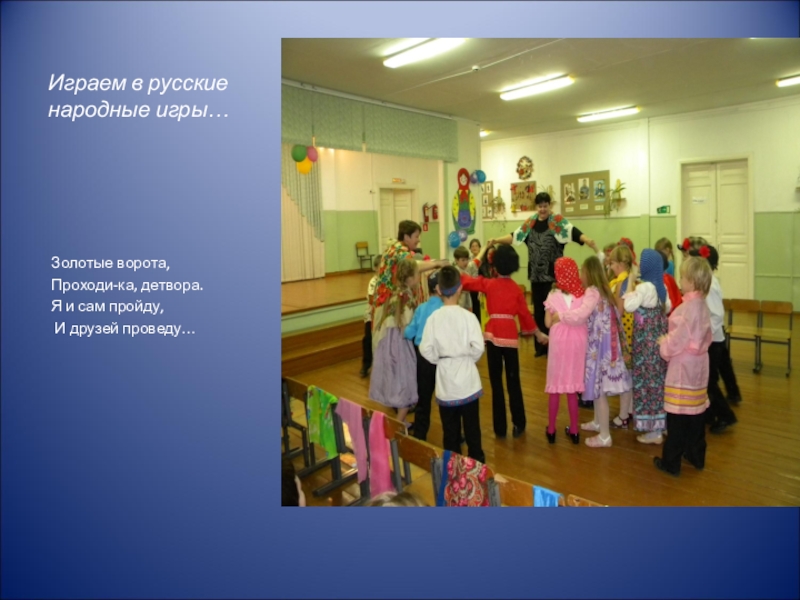 Играем в русские народные игры…Золотые ворота,Проходи-ка, детвора.Я и сам пройду, И друзей проведу…