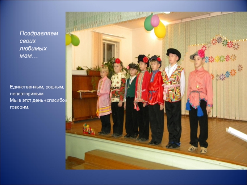 Поздравляем  своих любимых мам…Единственным, родным.неповторимымМы в этот день «спасибо» говорим.