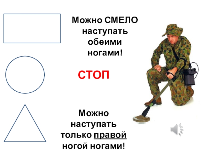 Можно СМЕЛО наступать обеими ногами!СТОПМожно наступать только правой ногой ногами!