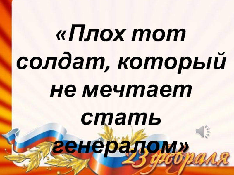 Слайд 24«Плох тот солдат, который не мечтает стать генералом»